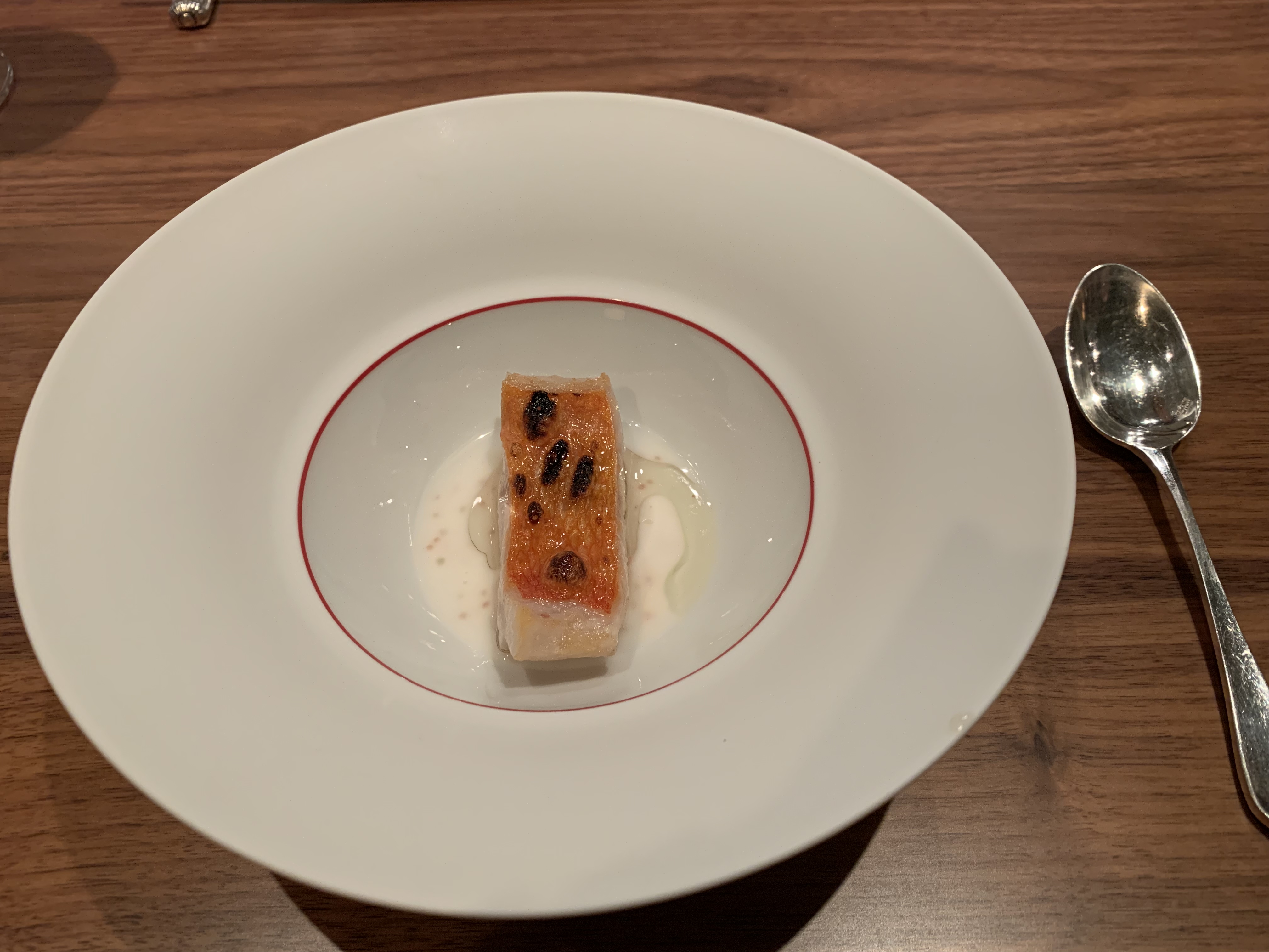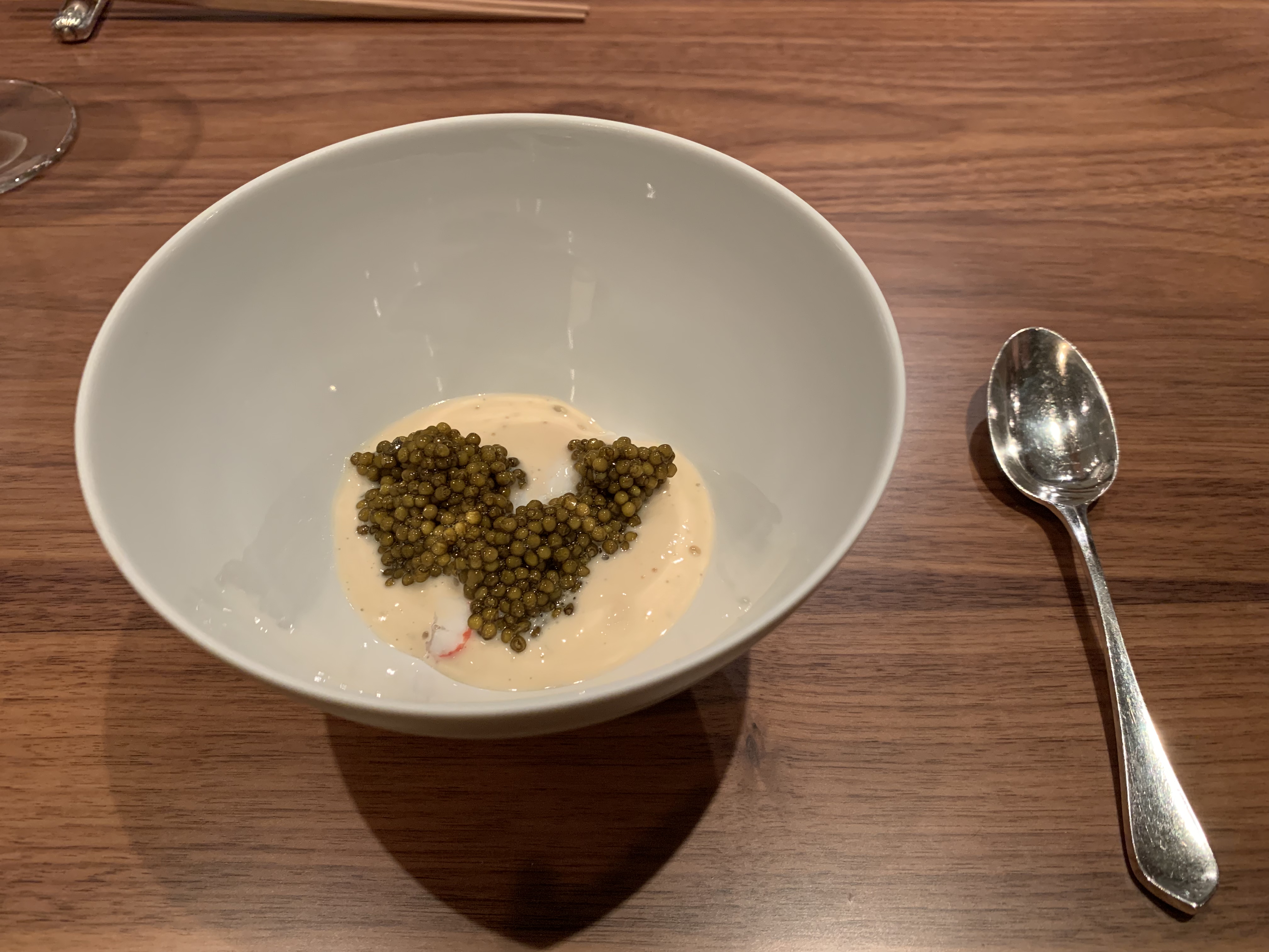 When we arrived at the door, we found a supermarket called Brooklyn Fare. I didn’t expect to go through the supermarket to the end. It was an open kitchen with a large open space. The kitchen was surrounded by three sides and had a table. Personally, recommend that the seat of the meal must choose counter, 18 seats around the open kitchen total, to have a better dining experience than the surrounding table, which is one of the major features of this restaurant. Throughout the course, I give the individual rate of the best dishes. Also, it is worthy to mention that this restaurant offers 7000 bottles of wine, and most of them are European wines. I absolutely recommend that people who like red wine should never miss it!