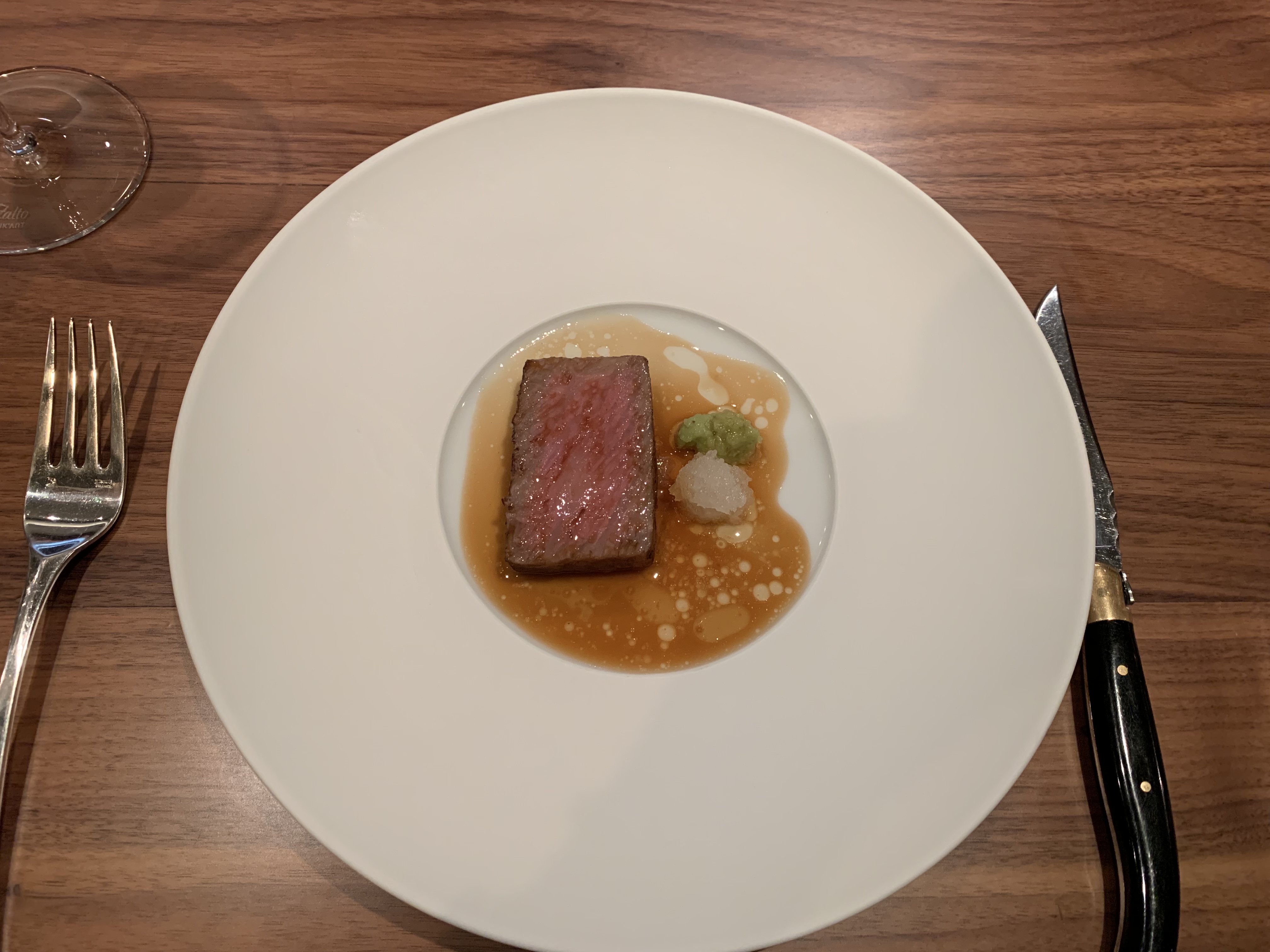 The chef used a simple and mellow sauce to highlight the beef’s fleshy, making the taste of the Miyazaki’s A5 excellent. It tastes delicious and doesn’t feel greasy.